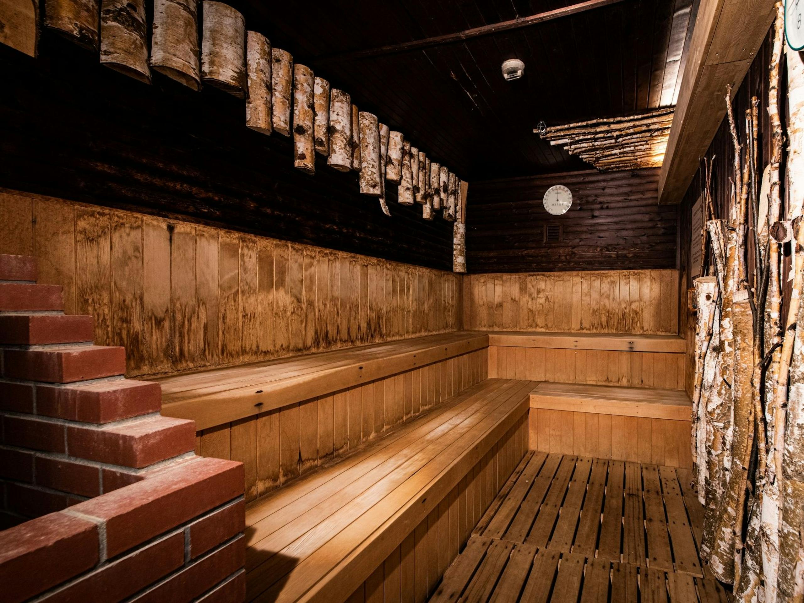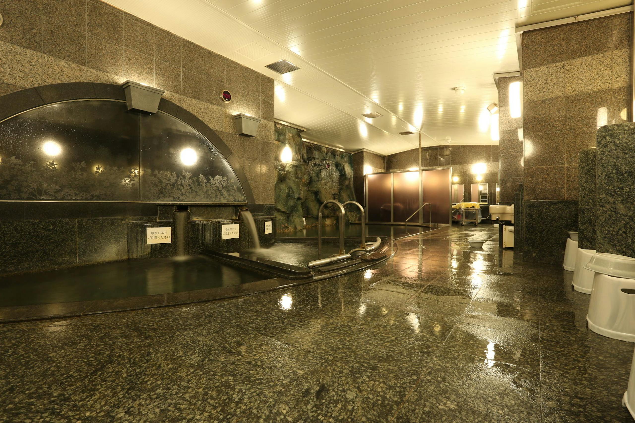 最上階の天然温泉や露天風呂、サウナなど温泉設備が充実。
